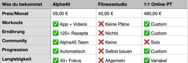 ✅ Alpha40 App (wöchentliche Workouts)