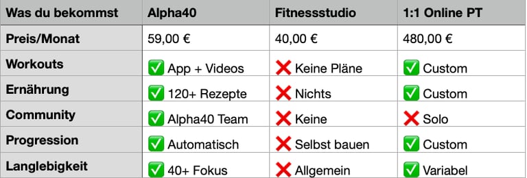 Alpha40 ist die Lösung: Ein systematisches 48-Wochen-Programm, das Männer 40+ wieder stark, fokussiert und leistungsstark macht – ohne Hype, ohne Quick-Fix.